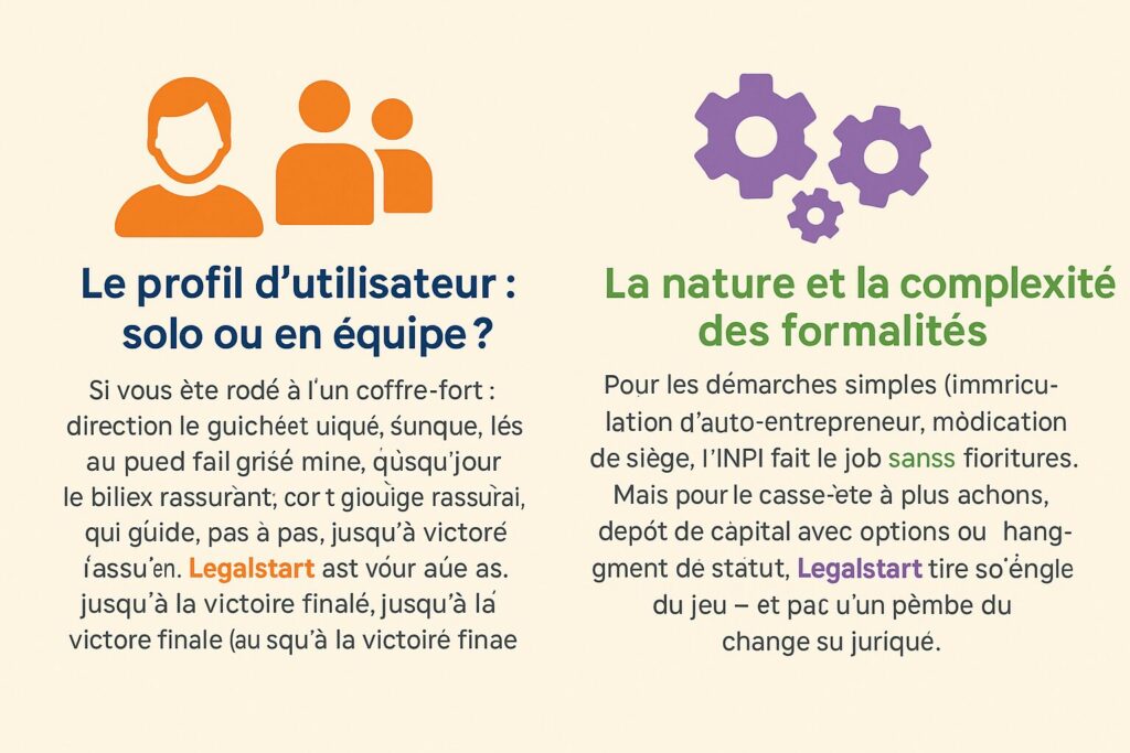 Pour les démarches simples (immatriculation d’auto-entrepreneur, modification de siège…), l’INPI fait le job sans fioritures. Mais pour le casse-tête à plusieurs actionnaires, le dépôt de capital avec options ou le changement de statut complexe, Legalstart tire son épingle du jeu – et pas qu’un peu !