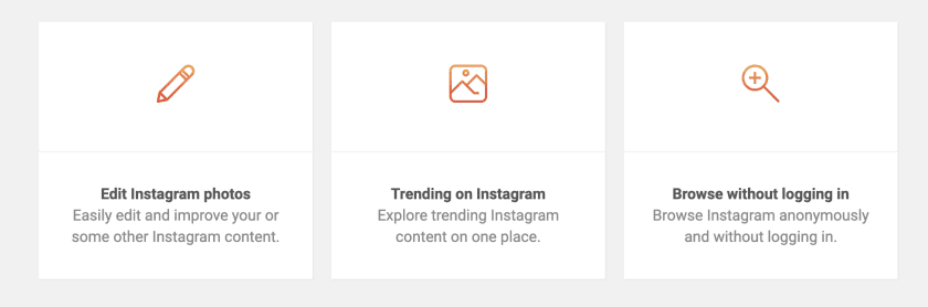 C’est également une app de téléchargement et d’édition de photos, ne laissant aucune trace. Pour télécharger et pouvoir éditer des photos à partir du réseau social, rendez-vous sur le site pour chercher le compte ou le contenu à télécharger.