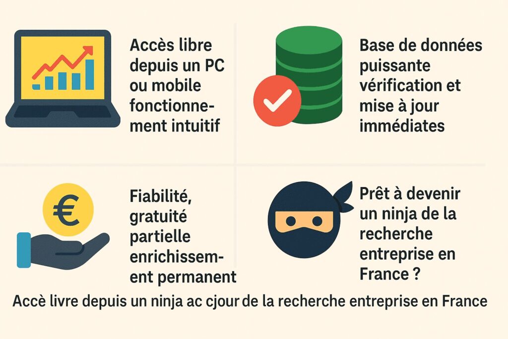 Et vous, êtes-vous prêt à devenir un ninja de la recherche entreprise en France ? Après tout, mieux vaut anticiper qu’improviser… Le prochain partenariat clé pourrait bien se jouer en un clic sur la plateforme française la plus incontournable du moment !